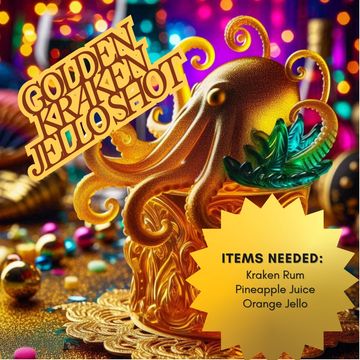 Add pineapple juice to a medium sized saucepan and bring to a boil. Remove saucepan from heat. Add Jell-O and stir until mix is completely dissolved. Add Kraken® Gold Rum and stir again. Carefully pour contents into plastic shot glasses. Let chill for 2 hours.