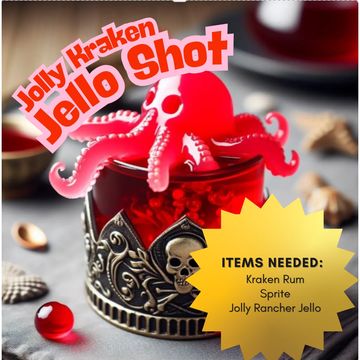 Galley-crafted jello shots. Anchored in Kraken Spiced Rum, but swap in any spirit to chart your own course!