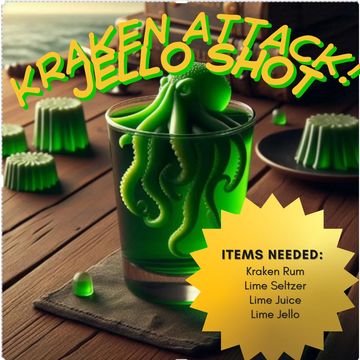 Add Sprite to a medium sized saucepan and bring to a boil. Remove saucepan from heat. Add Jell-O and stir until mix is completely dissolved. Add Kraken® Black Spiced Rum and stir again. Carefully pour contents into plastic shot glasses. Let chill for 2 hours. about this item